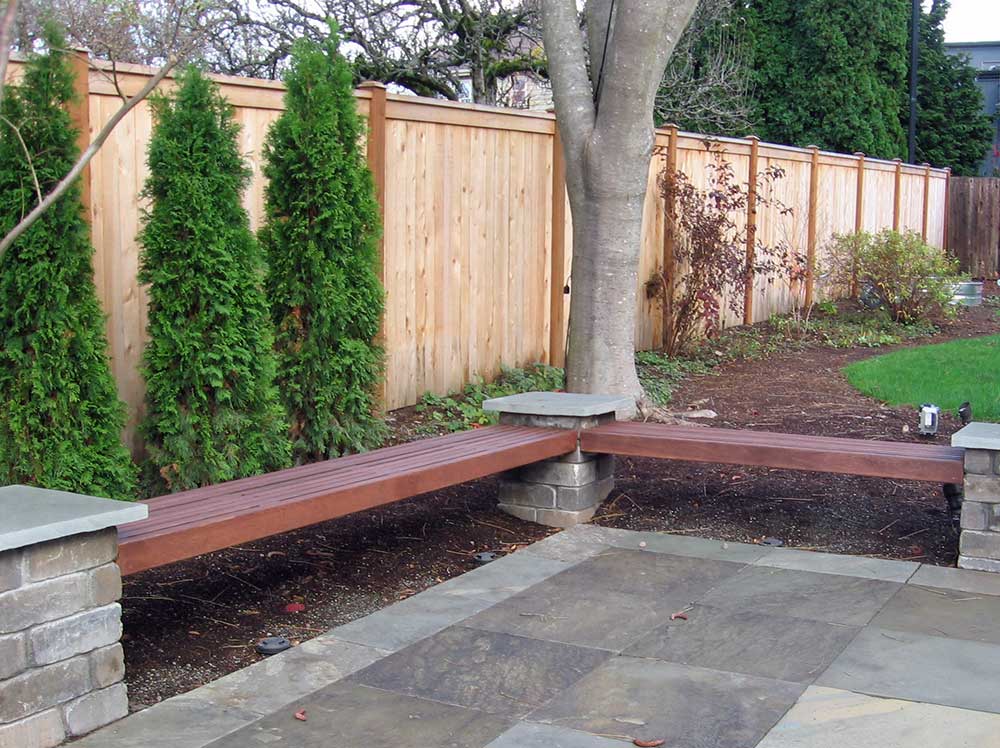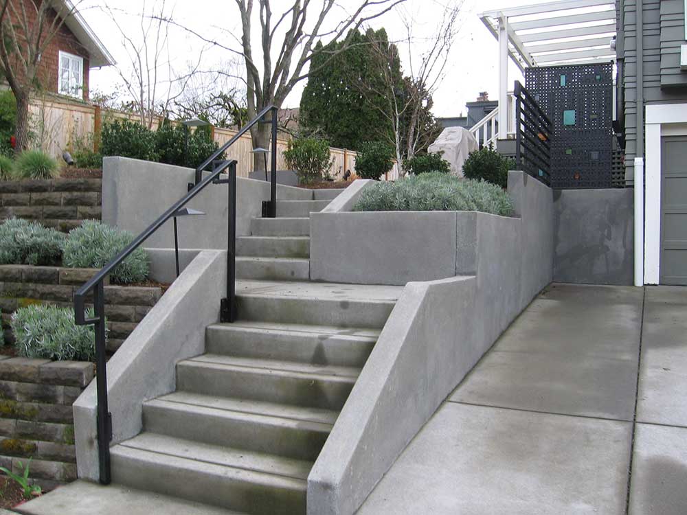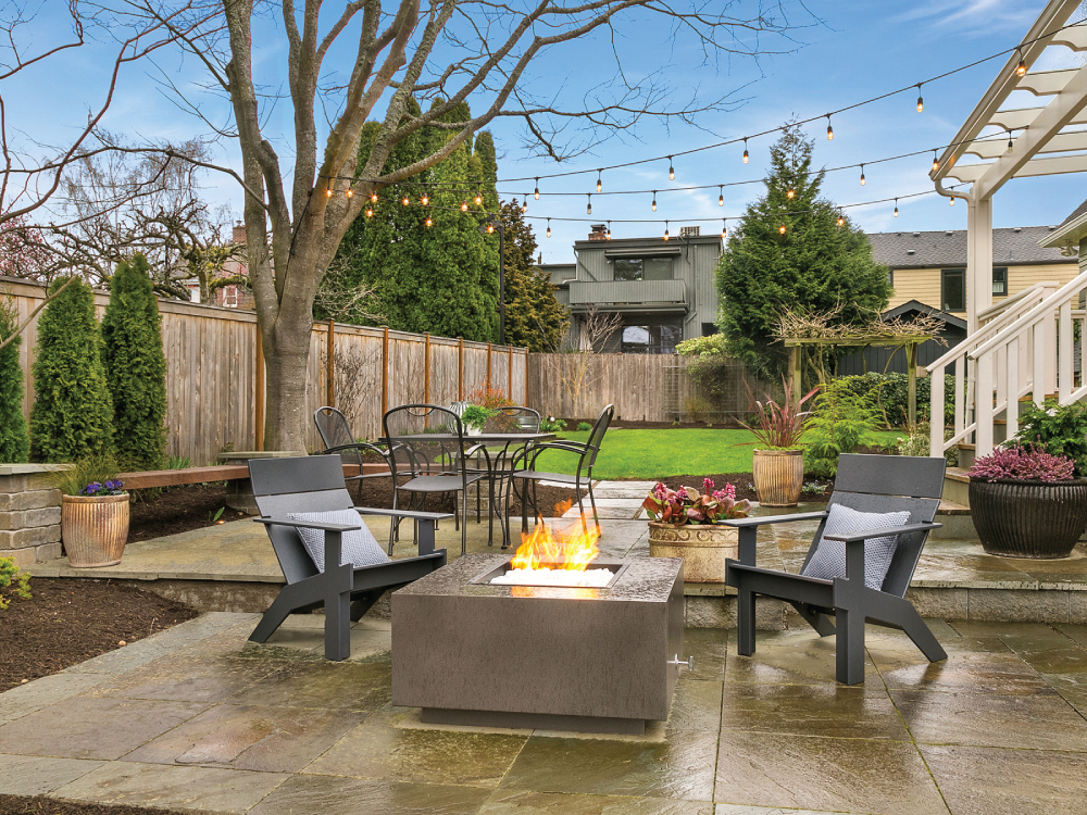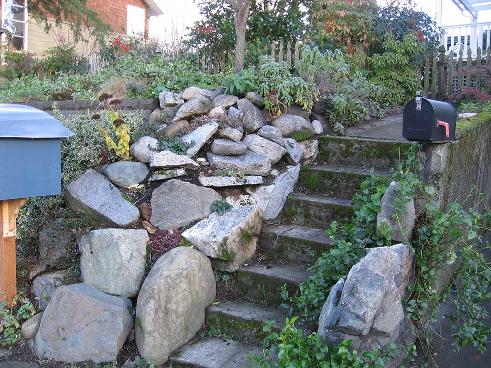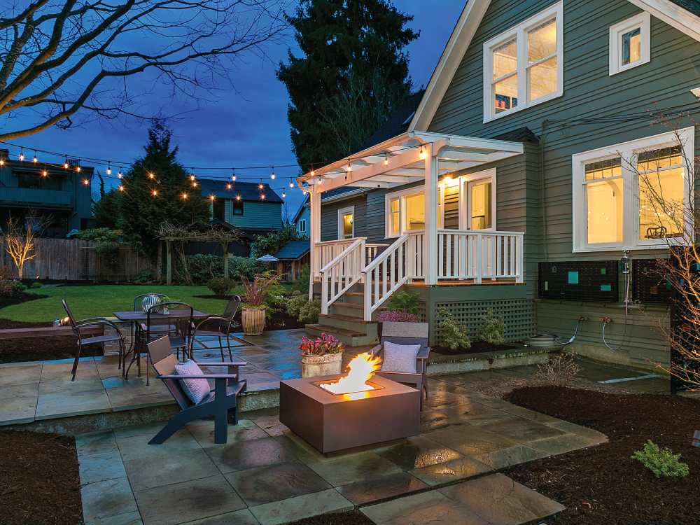 This 1920s Laurelhurst home, with a steep slope entry, outdated retaining walls and neglected lawns and beds, needed a landscape upgrade to beautify the surrounds and make the space functional. The homeowners envisioned dining and entertaining areas, low maintenance lush plantings , and play space for the children. A new driveway, reconfigured retaining walls and risers, bluestone patios, and redesigned beds and lawn transformed the space from uninviting to family-friendly outdoor living with beautiful surrounds.